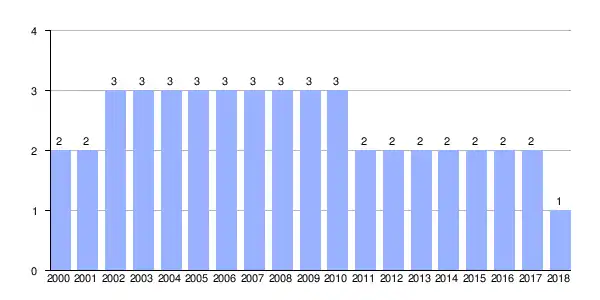 Gráfica de evolución demográfica de Bragaña entre 2000 y 2018 |