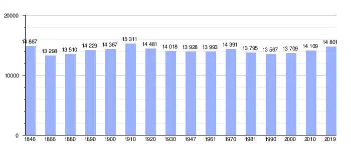El 1 de enero de 2019 la ciudad tenía una población de 14 801 habitantes. La zona abarca 56,46 km², lo que da una densidad demográfica de 262 habitantes por km².[3]