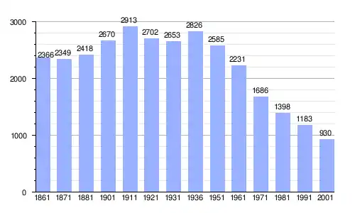 Gráfica de evolución demográfica de Brallo di Pregola entre 1861 y 2001 |