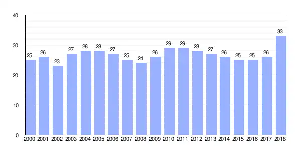 Gráfica de evolución demográfica de Branqueza entre 2000 y 2018 |