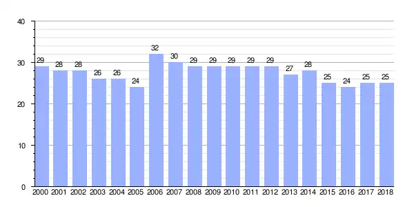 Gráfica de evolución demográfica de Brans de Arriba entre 2000 y 2018 |