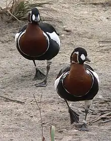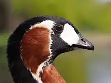La barnacla cuellirroja,[2] también barnacla de cuello rojo o barnacla cuello rojo (Branta ruficollis) es una especie de ave anseriforme de la familia Anatidae propia del Ártico europeo.