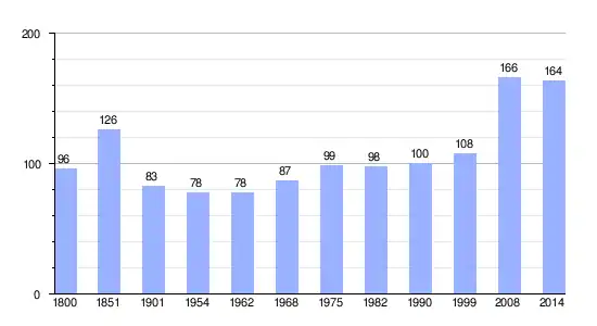 Gráfica de evolución demográfica de Branville-Hague entre 1800 y 2014 |