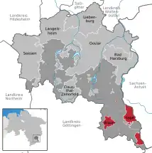 Se encuentra ubicado a poca distancia al oeste de la frontera con el estado de Sajonia-Anhalt, y al sur de la ciudad de Salzgitter.