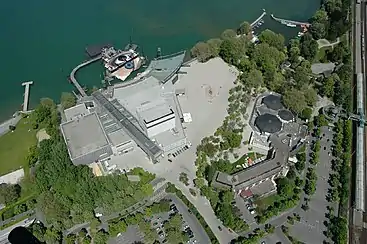 - Seebühne (o escenario flotante), con su anfiteatro al aire libre de 7,000 asientos, es el lugar para la ópera a gran escala o actuaciones musicales en un escenario sobre el agua en las orillas del Lago de Constanza.