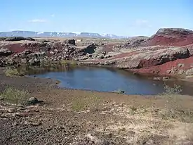 ![]() Vista de un lago de cráter del Brennisteinsfjöll | ||