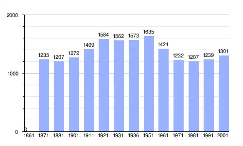 Gráfica de evolución demográfica de Brentino Belluno entre 1861 y 2001 |