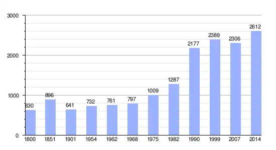 Gráfica de evolución demográfica de Bretteville-l'Orgueilleuse entre 1800 y 2014 |