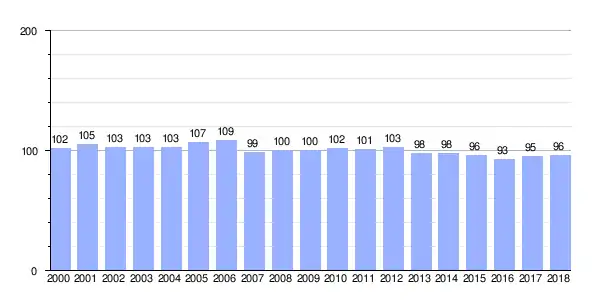 Gráfica de evolución demográfica de Brión entre 2000 y 2018 |