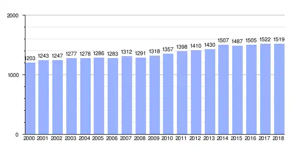 Gráfica de evolución demográfica de Brión entre 2000 y 2018 |