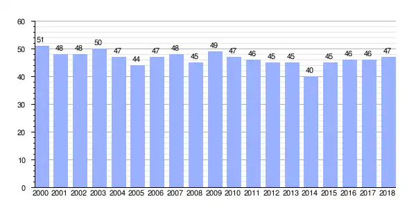 Gráfica de evolución demográfica de Brión de Abaixo entre 2000 y 2018 |