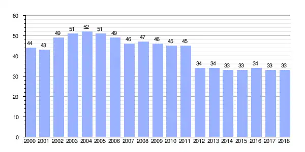 Gráfica de evolución demográfica de Brión de Arriba entre 2000 y 2018 |