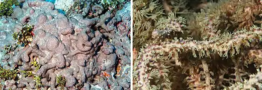 Las colonias de pólipos conforman masas incrustantes, lóbulos digitados o ramas cilíndricas erguidas, que pueden ser huecas. El género presenta una gran plasticidad, variando la forma de los individuos según las condiciones del entorno, como profundidad, iluminación, corrientes, etc. Los pólipos son monomórficos, retráctiles y grandes, dando una apariencia velluda a las especies. De color blancuzco, magenta, verde o beige. El cenénquima, o tejido común de la colonia, posee escleritos en forma de husos muy tuberculados, en ocasiones color magenta.[2]