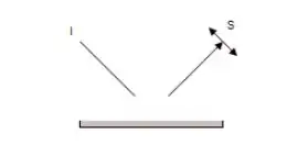 La rugosidad de la superficie en un rango de micrómetros influye en los niveles de reflectancia especular. El diagrama de la derecha muestra la reflexión con un ángulo sobre una superficie rugosa con una altura de rugosidad característica . La diferencia de trayectoria entre los rayos reflejados desde la parte superior e inferior de las protuberancias de la superficie es: