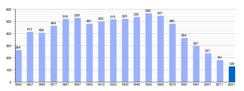 Población de derecho (1842-1991, excepto 1857 y 1860 que es población de hecho) o población residente (2001-2011) según los Censos de Población desde 1842. Población según el padrón municipal de 2021 del INE. |