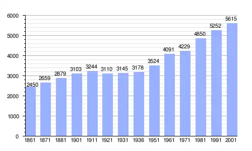 Gráfica de evolución demográfica de Briosco entre 1861 y 2001 |