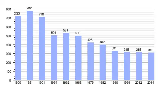 Gráfica de evolución demográfica de Broc entre 1800 y 2014 |