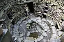 Tiempo después se le añadió un banco de piedra bajo alrededor de la base de la pared interior y esto se extendió un poco hacia la entrada. La casa de madera redonda pudo haber sido demolida entonces; ciertamente se demolió antes de que la pequeña "timonera" (con tres pilares de piedra) se construyera en el interior.