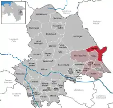 Se encuentra ubicado a poca distancia al oeste de la frontera con el estado de Sajonia-Anhalt, y muy cerca de las ciudades de Brunswick y Wolfsburgo.