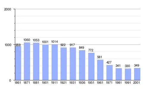 Gráfica de evolución demográfica de Brondello entre 1861 y 2001 |