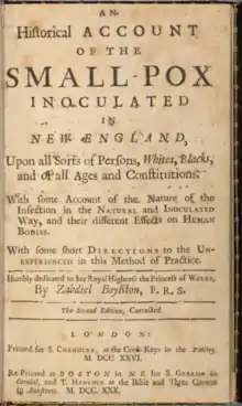 - "The Pamphlet Wars over Smallpox Vaccination, 1721" (PDF). National Humanities Society. Early America Imprints online. 2009. p. 4. Retrieved 17 June 2019.