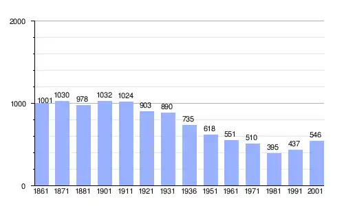 Gráfica de evolución demográfica de Brovello-Carpugnino entre 1861 y 2001 |