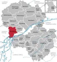 Se encuentra ubicado en el centro del estado, en la región de Baja Baviera, cerca de la orilla del río Isar —un afluente derecho del Danubio—.