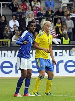 ![]() Bruna (izquierda) marcando a Nilla Fischer. | ||