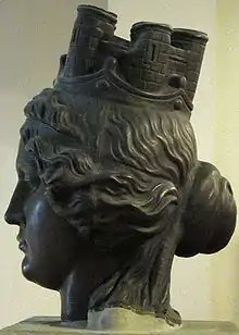 La primera estatua de Brunonia aparece como auriga de una cuadriga para la nueva ampliación del palacio brunswiqués a comienzos de 1863 según la idea del escultor Rietschel en la obra de Georg Ferdinand Howaldt en Brunswick. Fue realizado con dificultad a partir de placas de cobre individuales, que luego fueron conducidos a través de un marco de acero. Apenas dos años más tarde, pero entre el 23 y 24 de febrero de 1865 un incendio en el edificio central del castillo lo dejó completamente destruida cuando el techo se rompió y todo el grupo de figuras se hundió a varios metros de profundidad. Solo la cabeza se pudo salvar, la cual se encuentra en el Museo Estatal de Brunswick. En 2004 se encontró el dedo índice. Esto hizo posible determinar las dimensiones de la obra completa: su peso era de 754 gramos, de 29 cm de largo y tenía un diámetro en el punto de 10,5 cm de grueso.[1]