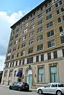 1923 | 2915 John R. Street En Edmund | Beaux Arts, Escuela de Chicago | Louis Kamper | El Hotel Carlton Plaza abrió sus puertas el 31 de mayo de 1924; diseñado por el famoso arquitecto de Detroit Louis Kamper, fue su "duodécimo encargo principal y el primer proyecto hotelero documentado de su empresa".[56] Durante la Era del Jazz, el hotel se convirtió en un lugar de reunión popular para afroamericanos ricos y afluentes, incluidos algunos de los nombres más importantes del jazz. En 1950, la revista Ebony describió al Carlton como "el hotel para negros más bellamente decorado y amueblado de forma más elaborada en todo Estados Unidos";[57] en mayo de 1960, Jet lo anunció como "el principal destino para el negro exigente".[56] En la década de 1980, el hotel se había ido deteriorando progresivamente; asumido por la ciudad de Detroit y cerrado en la década de 1990, fue comprado por inversores privados y renovado como condominio en 2005.[56] |