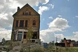 1876 | 205 Alfred Street En John R. | Veneciano gótico | Henry T. Brush & George D. Mason | Este edificio ha sido muy documentado por John Kossik[70] y fotografiado por el documentalista Camilo José Vergara.[71] La casa, construida entre 1876 y 1878 para Ransom Gillis, un comerciante mayorista de productos secos,[71] se encuentra dentro del distrito histórico de Woodward East. |