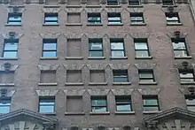 Los pisos cuarto al octavo están revestidos con ladrillo rosa y tienen ornamentación de terracota y piedra.[19] En el costado de la calle 40, la mayoría de las ventanas son de altura completa; la tramo central tiene dos ventanas estrechas, mientras que las tramos restantes tienen una gran ventana de estudio. Todos los vanos, excepto el central, tienen balcón en el cuarto piso. Las tramos más externas están flanqueadas por pilares de ladrillo continuos desde el cuarto al octavo piso, con una voluta sobre el sexto piso y un balcón en el séptimo.[16] Las tres tramos centrales están dispuestas de manera diferente. En los pisos cuarto y quinto, las ventanas del vano central están rematadas por volutas, y el segundo vano más exterior tiene marcos de piedra de doble altura rematados por frontones. En los pisos sexto a octavo, las tres tramos centrales tienen ventanas empotradas de altura completa, cada una con volutas y dinteles abocinados encima de ellas. Un alféizar de la ventana conecta los tres tramos intermedios en el sexto piso.[22] En el octavo piso, todas las aberturas tienen arcos rebajados.[21]