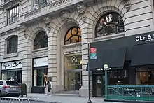 La planta baja y el sótano originalmente albergaban el Café des Beaux Arts, que tenía una cocina y un ratskeller, o cervecería alemana, en el sótano.[25] El restaurante contaba con un bar solo para mujeres, algo inusual a principios del siglo XX.[26] A 2019, el espacio de la planta baja estaba ocupado por una sucursal de la cadena de panaderías Ole & Steen, que también tenía un entrepiso de 21 m² sobre la planta baja.[27]