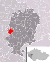 Se encuentra ubicada al noreste de la región, en la cuenca hidrográfica del río Berounka —un afluente izquierdo del río Moldava que, a su vez, lo es del Elba—, y cerca de la frontera con la región de Bohemia Central.[1]