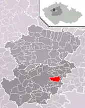 Se encuentra ubicada al noroeste de la región y de Praga, a poca distancia al norte del río Berounka —un afluente izquierdo del río Moldava—, y cerca de la frontera con la región de Ústí nad Labem.[1]