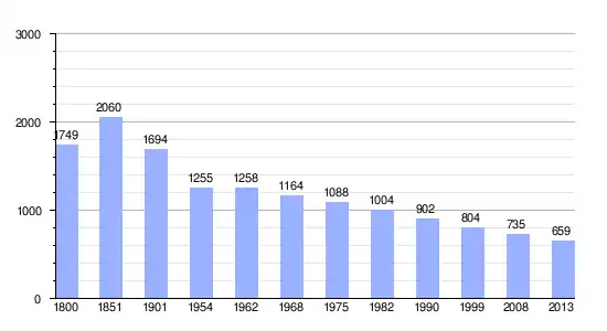 Gráfica de evolución demográfica de Buais-les-Monts entre 1800 y 2013 |