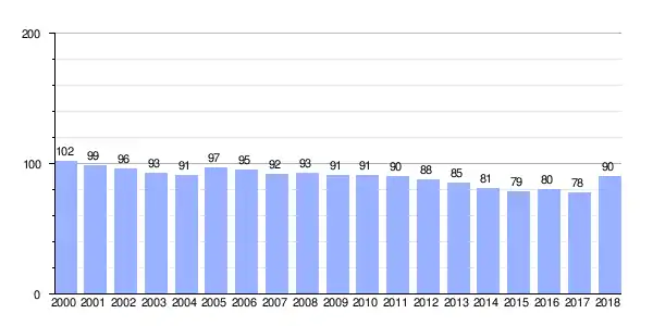 Gráfica de evolución demográfica de Buazo entre 2000 y 2018 |