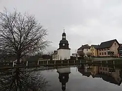 Se encuentra ubicado a poca distancia al norte de la frontera con los estados de Sajonia y Baviera.