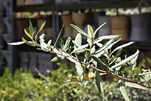 Buddleja saligna, el falso olivo, es un arbusto o pequeño árbol en la familia Scrophulariaceae. Es casi endémico de Sudáfrica donde tiene una amplia distribución. Crece con más frecuencia en barrancos y cerca de afloramientos, y está distribuido desde las elevaciones costeras hasta la meseta central. Es fuerte y resistente a las heladas.