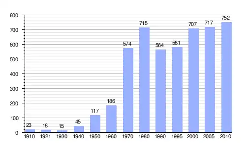 Población de los censos y conteos del Instituto Nacional de Estadística y Geografía (INEGI) de 1910 a 2010.[6] |