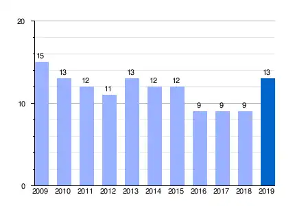 Gráfica de evolución demográfica de Buenavista entre 2009 y 2019 |