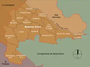Buenos Aires se desarrolla en una extensión de 599.63 hectáreas, con una densidad de 208 habitantes por hectárea.