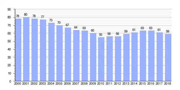 Gráfica de evolución demográfica de Buiturón entre 2000 y 2018 |