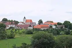 Se encuentra ubicada al sur de la región, cerca del río Otava —un afluente izquierdo del río Moldava que, a su vez, lo es del Elba— y de la frontera con la región de Bohemia Meridional y el estado alemán de Baviera.[1]