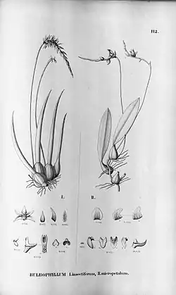 Bulbophyllum: nombre genérico que se refiere a la forma de las hojas que es bulbosa.
