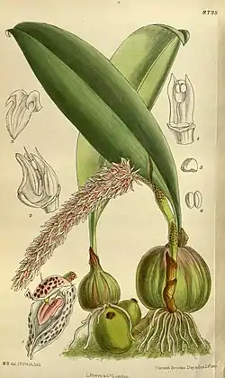 Bulbophyllum: nombre genérico que se refiere a la forma de las hojas que es bulbosa.