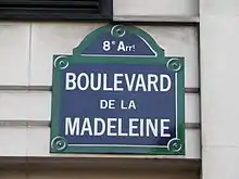 El Bulevar de la Madeleine es una calle que forma el límite entre los distritos I, VIII y IX de París, Francia.
