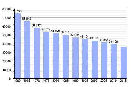 Gráfica de evolución demográfica de Bungo-Ōno entre 1960 y 2015 |