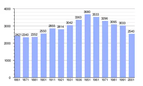 Gráfica de evolución demográfica de Buonvicino entre 1861 y 2001 |