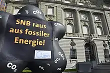 - En 2013, había concienciación significativa en la industria financiera sobre los riesgos asociados con la exposición a compañías implicadas en la extracción de combustibles fósiles.[20] A comienzos de 2014, el Grupo FTSE, BlackRock y el Consejo de Defensa de los Recursos Naturales colaboraron en la creación de una serie de índices del Mercado de valores que excluye a las compañías relacionadas con la exploración, propiedad o extracción de carbono de reservas de combustibles fósiles. Estos índices se pretende que faciliten a los mantener alejadas sus inversiones de tales compañías.[21][22] Se ha propuesto que se requiera a las compañías por ley que informen de us emisiones de gases invernadero y evaluar el riesgo que esto podría suponer para su rendimiento financiero futuro. Según Christiana Figueres, del UNFCCC, las compañías tienen un deber hacia los accionistas para moverse a una economía de carbono bajo, debido a los efectos de la burbuja de carbono.[1]